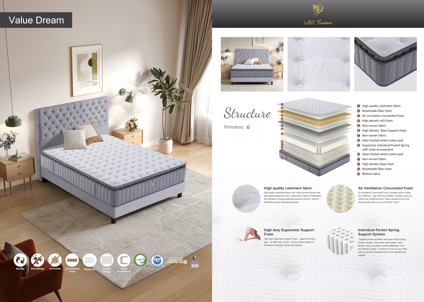 The buttoned-in bedhead gives an elegant look. Generous padding adds to the classic styling and give a cosy, snuggle-in feel.